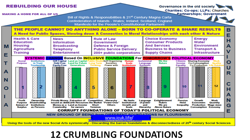 I remind you of the image of the complex house we pictured at the London Global Table and worked on as Independent Constituionlists UK . It portrays its crumbling foundations. It gives hints of the new foundations for a true home which a new meta-narrative can fashion and encourage us to build.